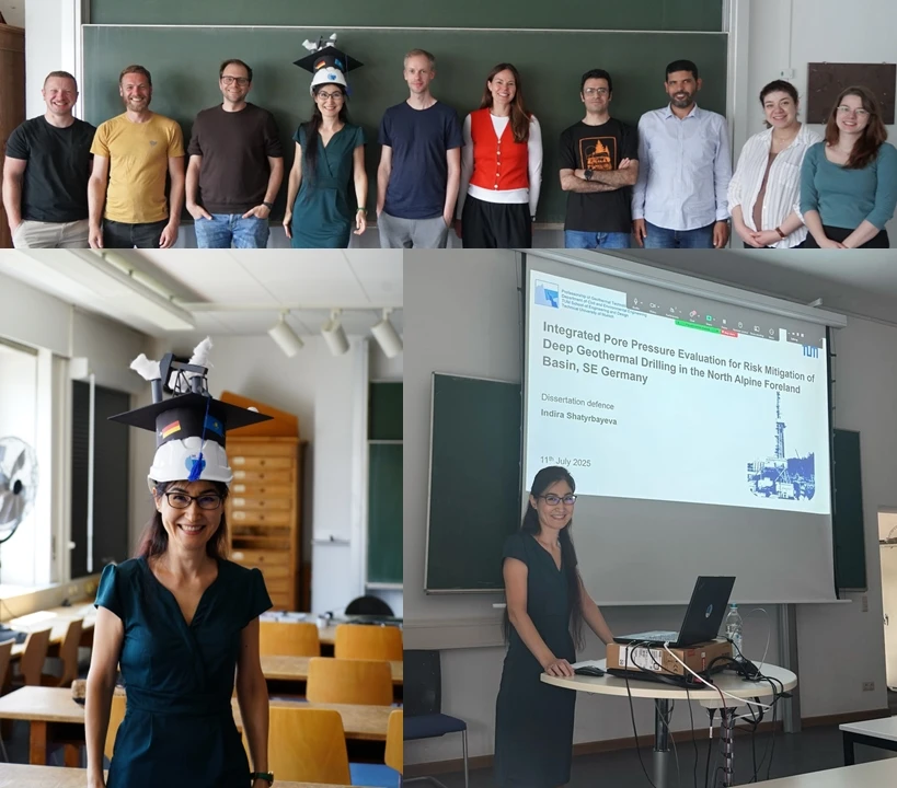 On July 11th Indira Shatyrbayeva successfully defended her PhD thesis entitled “Integrated Pore Pressure Evaluation for Risk Mitigation of Deep Geothermal Drilling in the North Alpine Foreland Basin, SE Germany”.