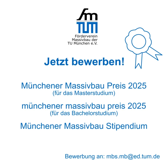 Bewerbungen Münchener Massivbau Preis (Master), münchener massivbau preis (Bachelor) und Münchener Massivbau Stipendium