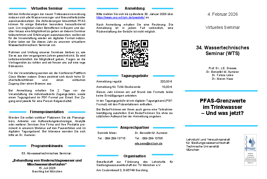 Welcome to the Chair of Urban Water Systems Engineering at the Technische Universität München. Our research activities are centered around sustainable, energy-efficient urban water and wastewater systems, energy recovery from wastewater and anaerobic technologies, storm water treatment and management, microbial systems, engineered natural treatment systems, advanced water treatment (membrane- and oxidation hybrid processes), water recycling, and state-of-the-art analytical tools for process control and water quality.