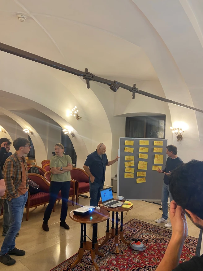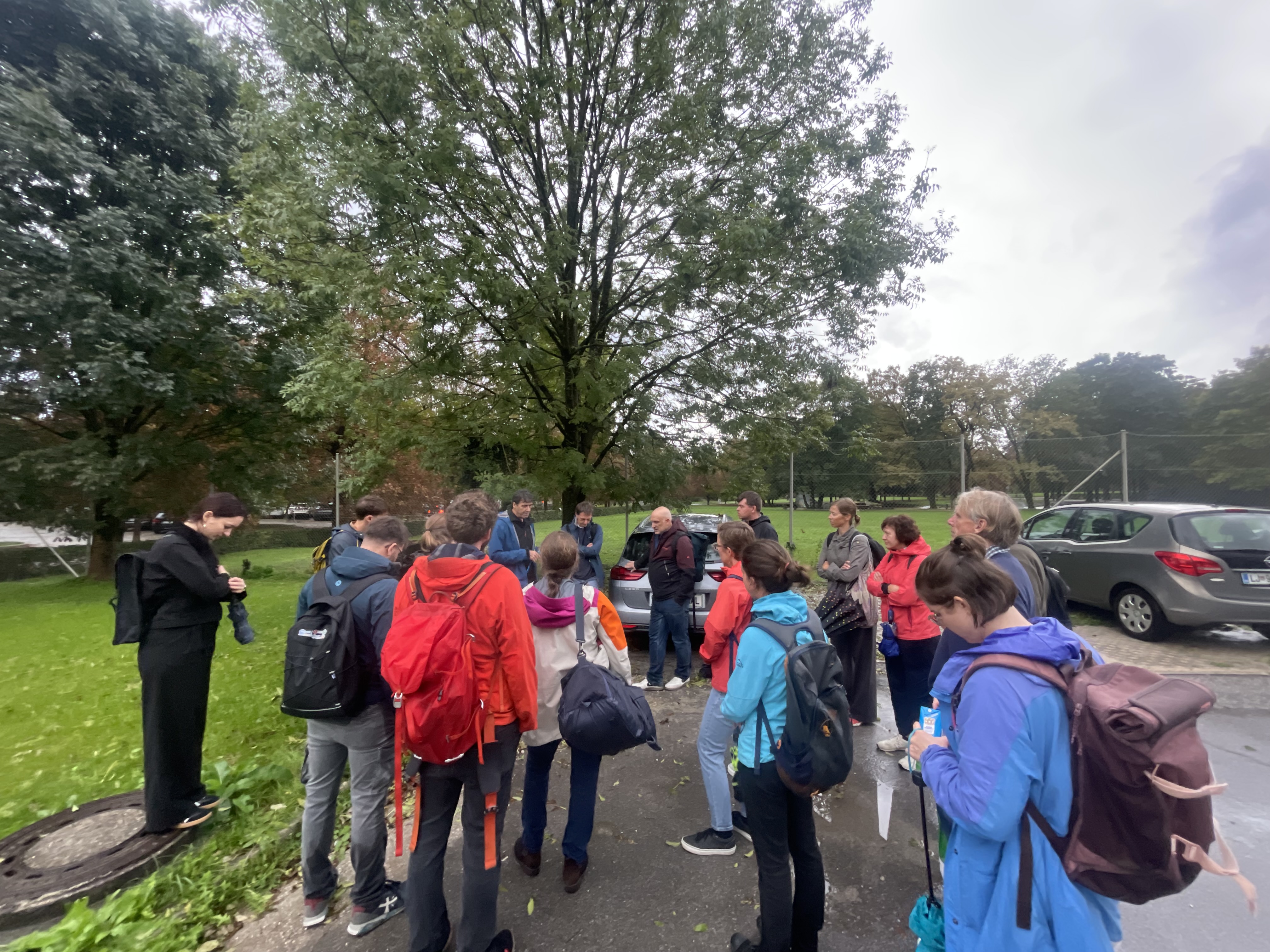 Despite the rainy weather, participants engaged in a productive site visit near Ljubljana’s Town Hall. The visit included two key stops: