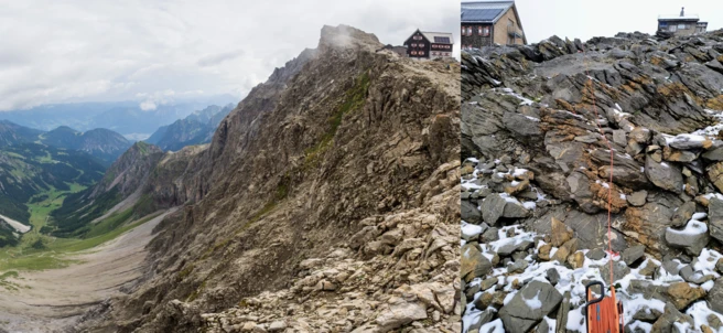 At the end of June, Max, Ben, Felix, and Simon visited the highest DAV hut in Vorarlberg (Mannheimer Hütte) for two days to carry out a variety of geophysical and geotechnical investigations. By using ERT measurements, we want to find out whether the steep north face on whose ridge the hut stands is affected by permafrost conditions. We also set up several convergence measurement transects so that we can regularly record and observe deformations in the future.